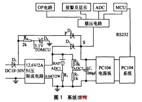 環境測試儀是指能夠測量溫度、濕度、壓力、風速等環境參數的儀器。為了滿足各種復雜地理環境下的測試需求,測試儀迫切需要小型化和便攜式。為了保持與現有軟件的最大兼容性, 我們選用PC104 的系統架構設計了便攜式的測試儀。PC104 是IBM PC 兼容工業標準的架構體系。PC104 主板對電源系統要求較高, 設計選用工業級的PC104 電源板,此電源板支持寬范圍輸入( DC8~ 36 V) , 效率高達96 % 。為了滿足便攜性, 系統必須支持電池組供電( 鋰電池組或鉛酸蓄電池組等) , 由于鋰電池組具有單節電池標稱電壓高、自放電率低、質量能量密度和體積能量密度高、沒有記憶效應等優點,本系統選用鋰電池組供電。本文主要討論了系統供電電路及電池組充電電路的設計。