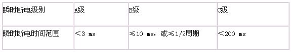 工業現場的供電品質很差,常常不能達到國家對電網波動等級中規定的最低標準C級。表1列出了國家標準對電網波動等級的規定。當供電電壓超過C 級規定時,通常稱為過壓或者欠壓。而失壓又稱瞬時斷電。產生瞬時斷電,最常見的原因是用電設備突然短路而它的保險絲還沒有熔斷的瞬間。另外開關或刀閘觸點接觸不良或顫抖等也會產生瞬間斷電。瞬間斷電所允許時間國內尚無標準,表2列出了日本《工業用計算機環境標準》中規定的瞬間斷電級別。