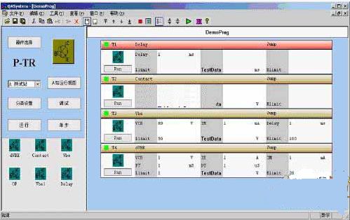 2、編輯模塊,用于器件選擇、分類設置、調試、建立測試程序,初始測試程序的界面如圖3所示: