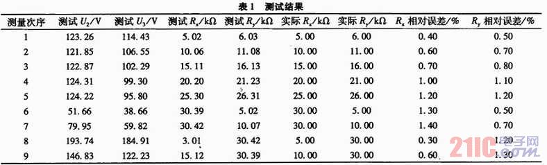 由1~5組可知,當(dāng)絕緣電阻大時(shí),測(cè)試相對(duì)誤差略有增大,這是因?yàn)椴蓸覣/D的輸入阻抗較小,因此當(dāng)測(cè)試電阻較大時(shí)造成誤差相對(duì)大些。另外,當(dāng)負(fù)母線的絕緣電阻<30 kΩ、負(fù)母線絕緣電阻正常時(shí),前者的測(cè)量效果差些。因?yàn)榇藭r(shí)實(shí)際測(cè)得的電壓U2和U3都較小,A/D采樣的相對(duì)誤差大一些,所以電阻的誤差也大一些。不過遠(yuǎn)好于平衡橋法無法發(fā)現(xiàn)兩點(diǎn)接地的情況,可以正卻發(fā)現(xiàn)接地。絕緣檢測(cè)的環(huán)境下,只要絕緣電阻>20 kΩ即認(rèn)為絕緣良好,因此對(duì)于絕緣檢測(cè)的應(yīng)用環(huán)境,本系統(tǒng)能夠比較精確的測(cè)試各路的絕緣電阻,完全滿足應(yīng)用環(huán)境的需要。