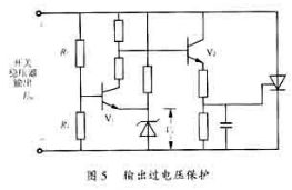 輸出過電壓保護在開關穩壓電源中是至關重要的。特別對輸出為5V的開關穩壓器來說,它的負載是大量的高集成度的邏輯器件。如果在工作時,開關穩壓器的開關三極管突然損壞,輸出電位就可能立即升高到輸入未穩壓直流電源的電壓值,瞬時造成很大的損失。常用的方法是晶閘管短路保護。最簡單的過電壓保護電路如圖4所示。當輸出電壓過高時,穩壓管被擊穿,觸發晶閘管導通,把輸出端短路,造成過電流,通過保險絲或電路保護器將輸入切斷,保護了負載。這種電路的響應時間相當于晶閘管的開通時間,約為5~10μs。它的缺點是動作電壓是固定的,溫度系數大,動作點不穩定。另外,穩壓管存在著參數的離散性,型號相同但過電壓起動值卻各不相同,給調試帶來了困難。圖5是改進后的電路。其中R1、R2是取樣電路,Vz是基準電壓。