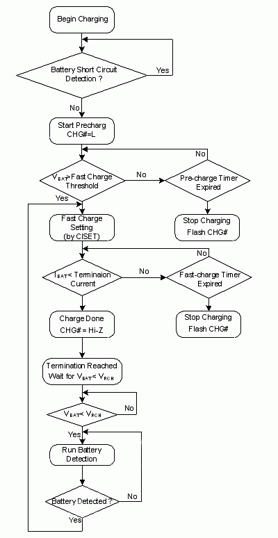 然而,當電池故障時,電池可能無法儲存電能,電壓抑不會升高,所充入的能量轉變成熱,除了依靠過溫度保護機制之外,IC內部亦具有超時定時器,無論此時電池電壓狀態如何,只要超過設定充電時間后,隨即關閉充電器,以達到多重保護使用者之功能。