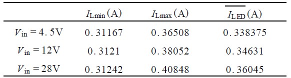 表1 三種輸入電壓情況下的驅(qū)動(dòng)電流