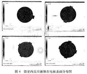在微小空間內進行液體樣品的進出樣品操作,肯定會對微反應室壁和電極表面產生一定壓力。為了保證整個反應室的密封性和電極表面敏感區域免受流體沖擊而保持敏感膜的完好無損,同時為了保證敏感電極表面免疫反應和電化學反應發生的均一性,綜合進出樣流速及保證電極表面樣品均勻分布等因素,合理設計微室結構以及進液口和出液口的數量和尺寸,使得在沒有微閥的情況下,實驗試劑在進入微室后能夠良好地分布于反應電極表面區域,并能被順利排出不會殘留在微室內。
