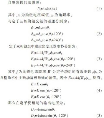 如圖1所示,自整角機主要由定子和轉子組成,定子和轉子問有很小的空氣隙,自整角機的激磁磁場,是一個磁場軸線在空間固定于激磁繞組軸線上,磁通密度分布曲線的幅值隨時間交變的脈振磁場。當轉子繞組偏離中線位置時,轉子激磁繞組所產生的脈振磁通必定和定子各相繞組相匝鏈,因而在定子各相繞組中感應出電勢。