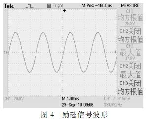 通過數字示波器觀察電路勵磁信號,自整角機輸出信號及接口電路變換輸出信號,結果波形如圖4~圖8所示。