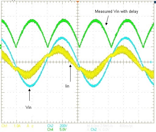 我們知道,PFC電流控制環路不斷嘗試強制電流與其參考匹配。該參考基本上是AC電壓信號,只是大小不同。因此,如果我們能夠延遲電壓檢測信號,并將延遲后的電壓信號用于電流參考生成,便可以讓電流延遲,來匹配AC電壓信號,從而使PF得到改善。這對一個模擬控制器來說比較困難,但對數字控制而言,只需幾行代碼便可以實現。