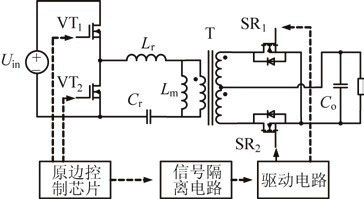 傳統型外驅動方案如圖3所示。該方案的優點在于同步整流的驅動電路簡單,驅動信號可靠;由于采用了隔離變壓器作為信號隔離電路,一次側MOS管VT1的驅動可以省略自舉電路。它的缺點在于變流器只能工作于臨界或者連續模式,限制了其電壓增益范圍。