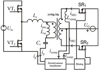 由于LLC諧振變流器的勵磁電流較大,導致一次側電流與二次側電流之間存在相位差,因此,可以采用補償電感L comp對相位進行補償,而有文獻則采用輔助變壓器對一次側電流進行采樣。這兩種驅動方案都可以解決相位差問題,而且沒有增加大型的磁性元件,有利于提高效率和功率密度。