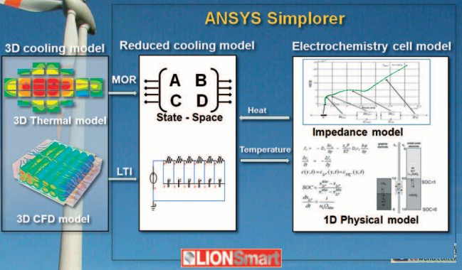ADFEM、ZSW和Lionsmart三家受了德國ZF的資助,對(泛鋰)電池進(jìn)行了熱方向的建模。CADFEM主要的工作,是把電池包的內(nèi)部散熱通 過簡化的方法進(jìn)行處理,這種MOR的方法,我個(gè)人沒有搞太明白,應(yīng)該是一種將多自由度通過處理后簡化的方法。ANSYS就是做這個(gè)事情滴,由于本人沒有特 別的基礎(chǔ),因此避過這一塊。