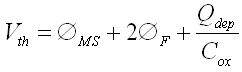 可見閾值電壓主要與基區(qū)摻雜濃度(p-)、柵氧化層厚度(Toxg)、耗盡層電荷(Qdep)相關(guān)。式中前兩項因子對Trench MOSFET和Plannar MOSFET而言相同,而第三項則不同,因為耗盡層電荷與溝道長度有關(guān),兩者的溝道長度表達(dá)式為