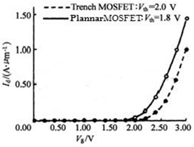 (a) Plannar MOSFET和Trench MOSFET的轉(zhuǎn)移特性曲線