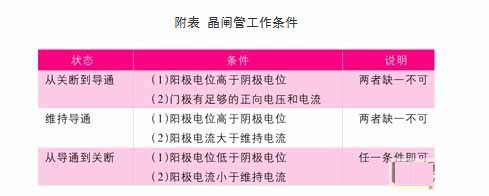 由于晶閘管只有導通和關斷兩種工作狀態,所以它具有開關特性,這種特性需要一定的條件才能轉化,此條件如附表所示。