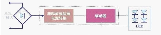 led 的排列方式及LED光源的規范決定著基本的驅動器 要求。LED 驅動器的主要功能就是在一定的工作條件范圍下限制流過LED 的電流, 而無論輸入及輸出電壓如何變化。LED驅動器基本的工作電路示意圖如圖4所示,其中所謂的“隔離”表示交流線路電壓與LED(即輸入與輸出)之間沒有物理 上的電氣連接,最常用的是采用變壓器來電氣隔離,而“非隔離”則沒有采用高頻變壓器來電氣隔離。