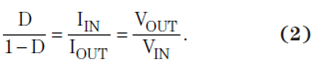 假設 100% 效率占空比 D,用于 CCM 運行的 ZETA 轉換器,其為: