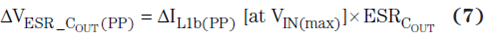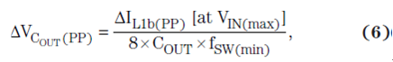 其中 fSW(min) 為最小開關頻率。方程式 7 計算了完全由輸出電容 ESR 引起的輸出紋波電壓部分: