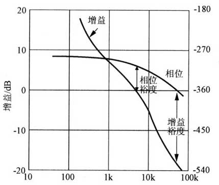 圖2 開關電源的伯特圖(相位裕度、增益裕度)