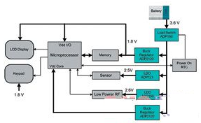 當(dāng)電源電壓比工作電壓高得多時,通過開關(guān)DC/DC轉(zhuǎn)換器能獲得更好的效率,在將一個直流電壓轉(zhuǎn)換為另一個直流電壓時,它的能量能暫時存儲在電感磁場,然后釋放給負載。便攜式開關(guān)調(diào)節(jié)器以500kHz~3MHz的頻率工作。DC/DC開關(guān)轉(zhuǎn)換器有多種拓撲結(jié)構(gòu)。內(nèi)置開關(guān)元件的同步降壓型調(diào)節(jié)器用于輸出電壓遠低于輸入電壓的場合,在便攜式系統(tǒng)中最為常用。用降壓調(diào)節(jié)器替換LDO可以提高系統(tǒng)效率。例如,當(dāng)利用LDO將系統(tǒng)電壓從3.6V降至1.2V,為負載電流為300 mA的微處理器內(nèi)核供電時,LDO效率約為1.2V/3.6V×100%=33%,67%的輸入功率以熱量形式損失。為了提高效率并降低工作溫度,應(yīng)當(dāng)用ADP2108等降壓轉(zhuǎn)換器取代LDO.降壓轉(zhuǎn)換器能將能量儲存在電感的磁場中,因而效率更高。用過使用ADIsimPowerTM設(shè)計工程師會發(fā)現(xiàn),在相同條件下ADP2108的效率為80%,比LDO提高47%.然而ADP2108尺寸較小,僅使用兩個去耦電容和一個1μH芯片電感,幾乎可以直接取代LDO.,低靜態(tài)電流、使能功能以及負載電流較小情況下的省電模式,都是選擇變壓轉(zhuǎn)換器的性能指標(biāo)。