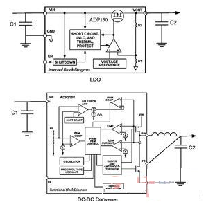 圖2 LDO和降壓轉(zhuǎn)換器的功能框圖