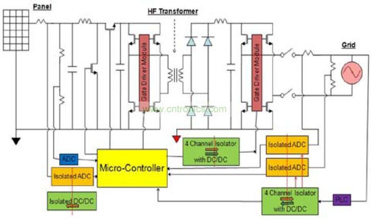 導讀:在太陽能電池板以外,電子元件(如PV逆變器)是導致高成本的主要元件。出于安全和可行性考慮,并網PV轉換器把獲得的直流與交流網相隔離。隔離的作用通常是滿足安全法規的要求,防止直流注入交流網,因為結果可能會影響配電變壓器和傳統的瓦特小時電表。本文旨在討論PV逆變器中的信號和電源隔離需求,探討如何利用微變壓器集成隔離功能以提高系統性能和可靠性、降低系統尺寸和成本。