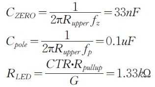 交叉頻率=1kHz;需要的相位裕度=70o;交叉頻率處增益衰減Gfc=-20dB;交叉頻率處的相位=-55o,K 因子計算為:k=4.5;fz=222kHz;fp=4.5kHz;G=10;CTR=0.8.