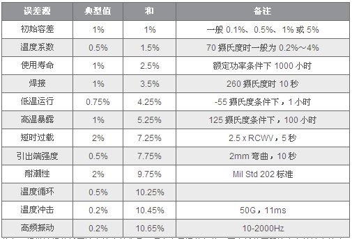 有趣的是,這樣給低壓輸出帶來了更高的精度。許多IC參考電壓范圍為0.6~1.25 V之間,輸出電壓降至這一范圍時會帶來1%或更高的精度。表1給出了您可能需要了解的一些信息,這些信息是典型電阻器產(chǎn)品說明書的電阻誤差術(shù)語匯編。在設計中,該列表會較難理解。大多數(shù)工程師都止步于初始容差,然而列表中還有一些或許不應被忽略的誤差項。表格中的每一項都有其微妙的影響。例如,沒有指定具體的溫度系數(shù)范圍,而實際上兩個電阻都可能隨溫度變化以相同方向變化,并且不會在相反的極端。在對一些經(jīng)驗豐富的設計工程師進行簡單調(diào)查后,得出的結(jié)論是假設1%容差電阻的2.5%精度可在極端情況和合理成本之間得到一個合理的折中方案。