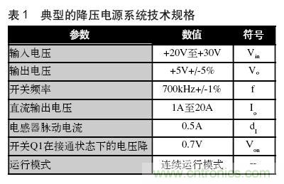 圖1所示為一個降壓拓撲結構電源的架構,該構架廣泛應用于輸出電壓小于輸入電壓的系統。在典型的降壓拓撲結構電路中,當開關(Q1)閉合時,電流開始通過這個開關流向輸出端,并以某一速率穩步增大,增加速率取決于電路電感。根據楞次定律,di=E*dt/L,流過電感器的電流所發生的變化量等于電壓乘以時間變化量,再除以這個電感值。由于流過負載電阻RL的電流穩定增加,輸出電壓成正比增大。
