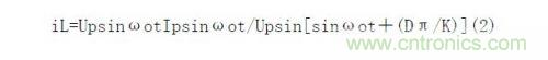 在功率放大的功率因數校正中基本上是采用升壓式變換電路,而升壓電感是串在輸入回路中,電感電流等于輸入電流,只要控制電感電流就可以達到控制輸入電流。功率開關器件的切換速率ωS遠大于工頻ωo(ωS=Kωo,K 1);L值大得足以使電感中的電流連續,當功率器件開關切換脈沖占空比的變化遵循正弦規律時,即所謂正弦波脈寬調制(SPWM)時電感中流過的電流為: