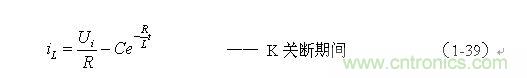 式中C為待定常數,把初始條件(令t = 0)代入上式,很容易就可求出C。由于控制開關K由接通狀態突然轉為關斷時,流過儲能電感L中的電流iL不能突變,即i(Ton+) = i(Toff—),并且正好等于流過儲能電感L的最大電流ILm ,因此(1-39)式可以寫為: