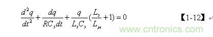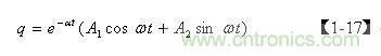 前面已經指出,齊次微分方程【1-12】式僅表示電容Cs充滿電后,輸入電壓等于0時,電容兩端電壓或存儲電荷隨時間變化的過程,即,當t = 0時,q從最大值開始隨時間變化的過程。但齊次微分方程【1-12】式并不完全表示電容Cs充、放電的全過程,我們仔細觀察【1-17】式便知:在LC電路中,當t = 0時,如果q 為最大值,電容一定是按余弦規律放電;如果 q為最小值,則電容一定是按正弦規律充電。因此,我們還需要根據初始條件來對【1-10】非齊次微分方程式進一步求解。