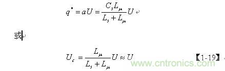 上式中的電壓 Uc實際上就是電容Cs兩端電壓的半波平均值Upa。它等于輸入電壓U在漏感Ls 與勵磁電感Lu 組成的串聯電路中勵磁電感 Lu兩端的分壓的半波平均值。由于漏感 Ls與勵磁電感Lu 相比非常小,因此,可以把 Uc看成與輸入電壓U基本相等。