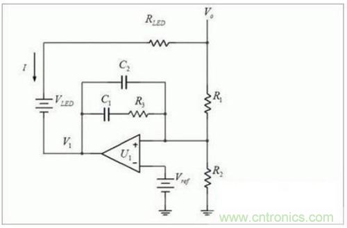 因為Vref 上電后就是穩定的了,所以被Rled*(R1+R2)除以后,很小,視為0。