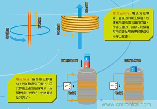 總而言之,電流磁效應就是電流的流動在四周產生磁場,電磁感應則是不斷變化的外加磁場使線圈產生感應電流。