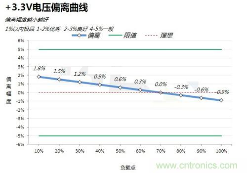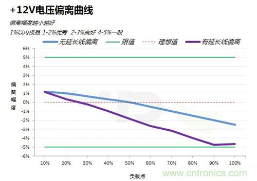 這是一款入門級電源的整體表現(xiàn),效能就是通牌水準,而電源電壓偏離也是處于一個比較好的水平,下面我們接上延長線去測試。