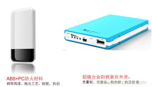 移動電源購買者最容易忽視就是外殼及配件。一般移動電源均以ABS+PC料為主。價格視外殼重量和外形圖案而定,工廠批發價格為:5.5--8元之間。