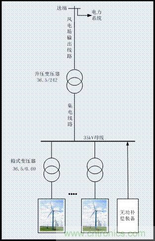 4)風電場送出線路:升壓變壓器將風電電力升壓后經送電線路接入電力系統。