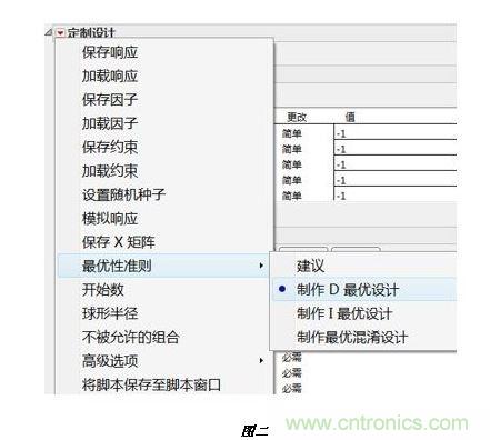 篩選設(shè)計是指在問題研究的早期,潛在的候選因素很多,如何有效地大規(guī)模降低實驗次數(shù)而又準(zhǔn)確地找到少數(shù)幾個影響發(fā)動機性能的關(guān)鍵因素。具體的實現(xiàn)手段有兩種:一種是經(jīng)典的實驗設(shè)計方法,如部分析因設(shè)計、Plackett-Burman設(shè)計等(如圖一所示);另一種是高級的實驗設(shè)計方法,如D最優(yōu)設(shè)計等(如圖二所示)。