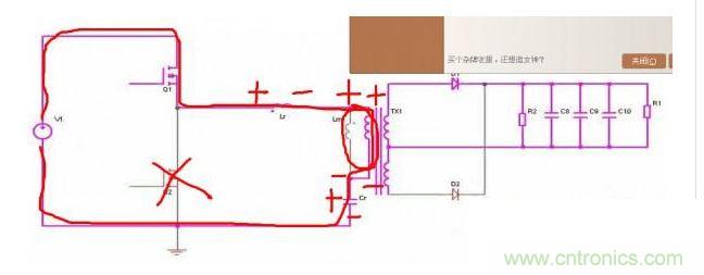 上管開通,注意諧振電感、勵磁電感、諧振電容的正負