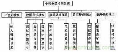 根據測試系統的功能需求,可將系統軟件分成五大功能模塊,分別為IO設置模塊、數據顯示模塊、數據處理模塊、數據管理模塊及報表管理模塊,如圖2所示。在確定了測試系統的功能并劃分軟件系統各主要功能模塊后,就可規劃主要程序結構和程序。