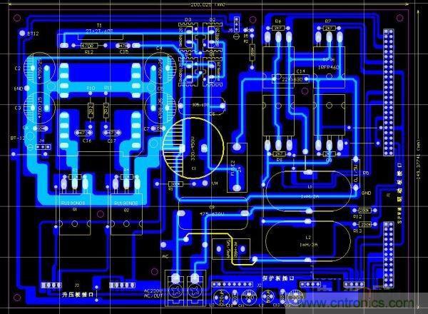下面是功率主板的PCB截圖,長寬為200X150MM,因?yàn)?,這部分的電路比較簡(jiǎn)單,就不給出原理圖了,直接畫了PCB圖,如圖1所示。