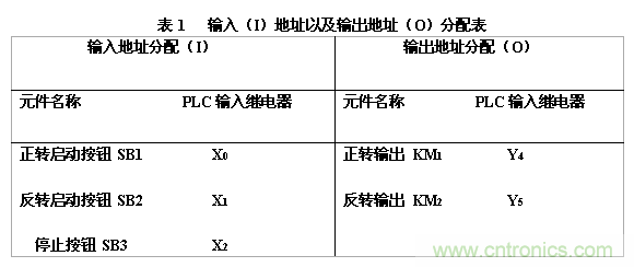 由上圖可知,PLC程序在使用中軟件互鎖功能并不可靠。因此,需在硬件總添加互鎖,地址分配表如表1所示,除了在硬件中添加互鎖外,還需做一個(gè)熱保護(hù)裝置。