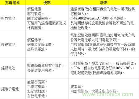 由表1優缺點看來,鎳鎘、鎳氫及鋰離子電池較適合使用在電子產品上;而鋰離子電池無論是在體積、重量及容量(電子產品的使用時間)較優于鎳鎘、鎳氫電池,也無記憶效應的問題,所以鋰離子電池在電子產品使用上似乎方便許多。