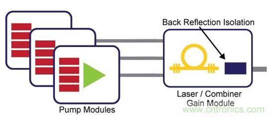 (圖片說明:nLIGHT altaTM激光器的設(shè)計(jì)在激光器與傳輸光纖之間集成了一個(gè)返射隔離器)