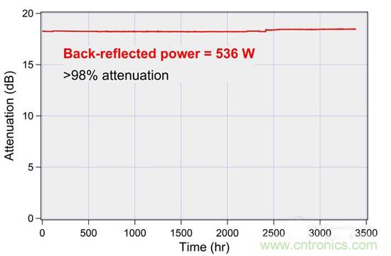 因?yàn)楣ぜ砻娴牟灰?guī)則、與表面法線對齊不精確以及處理光學(xué)元件采光角度的限制,典型的回返激光通常只占一小部分激光器的功率,此外,回返現(xiàn)象通常持續(xù)時(shí)間很短,例如打孔這樣的應(yīng)用。但是,部分光纖激光器的設(shè)計(jì)會(huì)導(dǎo)致難以處理甚至無法處理反射材料。回返造成的損傷通常是由于光功率在聚合物材料上能量堆積而導(dǎo)致過熱或燃燒引起的。nLIGHT altaTM光纖激光器會(huì)剝除耦合到饋送光纖的回返光,并將其引導(dǎo)到水冷光束吸收器,激光在此被轉(zhuǎn)換為熱量,不涉及任何聚合物,從而消除了主要的損壞原因。無聚合物的隔離器旨在連續(xù)吸收消除>500 W的回返激光,如壽命測試所示。