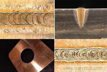 (圖片說明:510系列銅焊接縫(a)及其橫截面(b),以及純101系列銅焊接接縫(c)與航節(jié)后的采樣部分(d)。)