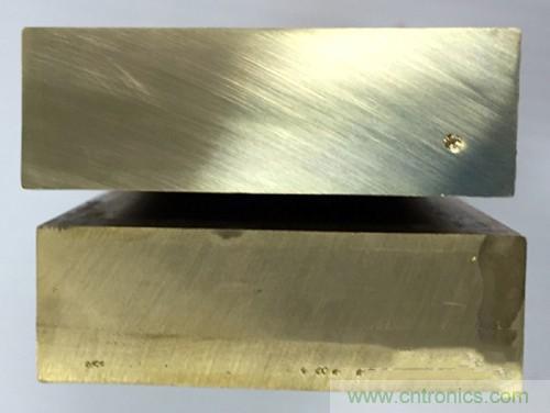下圖所示為恩耐nLIGHT altaTM光纖激光器與某傳統(tǒng)光纖激光器進(jìn)行黃銅焊接后的截面 - 前者卓越的焊接質(zhì)量顯而易見。