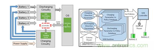 傳統(tǒng)的BMS肯定是拒絕的,但是如果是SDB(software defined battery)就不一定了。傳統(tǒng)的BMS一根充電線進(jìn)來,給所有的電池充電/記錄/截至,然后再輸出。如果電芯一致性較差,上邊所描述的那些問題就會一一發(fā)生。再進(jìn)一步,如果我們腦洞再開大一點,我在我的電池包里安裝上兩種電池,一種用于應(yīng)對低速巡航時的低倍率放電工況,另一種用于應(yīng)對高速急停時的高倍率放電工況。不同的電芯體系具有不同的特點,常考慮的能量密度/功率密度/成本/壽命/柔性等指標(biāo)也是相互沖突,如果需要在同一模組中使用不同體系電芯,搭配出一個綜合性能突出的產(chǎn)品,傳統(tǒng)的BMS就比較困難了。微軟覺得,這個可以這樣做:給每一個電池都加上一個充電放電管理微裝置(smart switching circuitry),收集每個電池的充放電電壓/電流/電阻,實現(xiàn)智能分流調(diào)配,使每個電芯的充放電情況接近于單體電芯,最大化電芯的使用價值。這種電芯管理模式的主要難點在于收集到這些數(shù)據(jù)之后的分析與電流調(diào)配,微軟為之開發(fā)了一個比較復(fù)雜的算法,并將使用這種電池管理模式的電池包為Software defined battery。