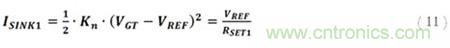 那么柵極驅動對閾值電壓的差是什么呢,VGT?這最終由偏置網絡第1柱的反饋決定;它本質上是維持所需ISINK1電流需要的電壓: