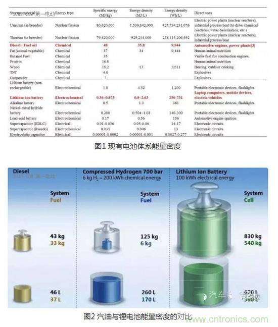 從下圖(圖1 汽油與鋰電池能量密度的對比)來看,鋰離子電池的能量密度和體積能量密度確實比較低。開安全環保的電動車的人就回過頭來指著搞電池的說,咋不像摩爾定律那樣,18個月就把電池能量密度翻個番,鋰電池不行,咱就換個其他的,誰行誰上。這還真不能那么急,咱來看看這些個能進行充放電的電池都啥水平?再打開地圖找一找,看看是不是有啥錯過的寶貝,看看是不是那么容易,鋰電池是不是能達到燃油車的能量密度水平。