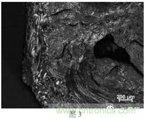 圖3對(duì)應(yīng)原料c的偏光照片,結(jié)果顯示其以流線型和流域性結(jié)構(gòu)為主,取向性較差。